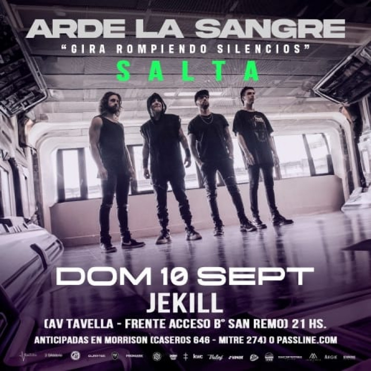 Arde La Sangre (ALS) Lanza su gira «ROMPIENDO SILENCIOS » por todo en Noa .Este es el nuevo proyecto de Hernán «Tery» Langer (guitarras y coros) y Marcelo «Corvex» Corvalán (bajo y voz), ambos ex miembros de Carajo, junto a Luciano «Tano» Farelli (teclados, guitarra y coros) y Nacho Benavides (batería).Prometen un show detonante y poderoso para todo el norte Argentino.