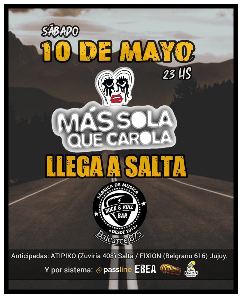Llega a Salta la banda Más sola que carola y lo hará el 10 de mayo en la Fábrica de música.